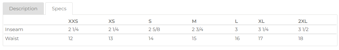 - 3 ½" graded inseam
